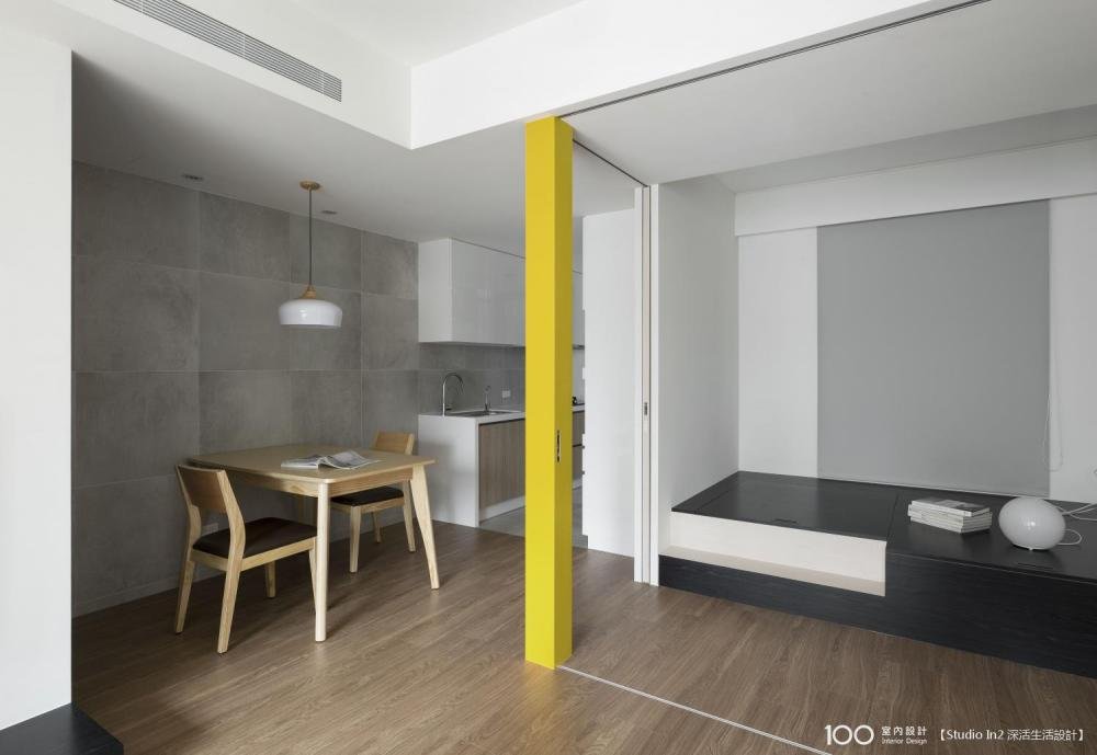 為了預留屋主對未來小朋友出生後的房間想法,設計師規劃了一個能收能放的次臥房,利用摺疊門可以完全收納的特性,既能製造開闊的視覺感,也具備超彈性的使用機能,當客房、休憩區都方便!